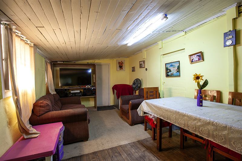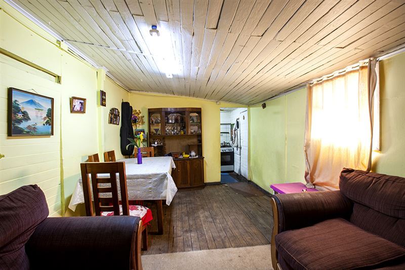 El inmueble cuenta con construcciones interiores ligeras cuya distribución es la siguiente: acceso con capacidad para 2 a 3 vehículos, estar, cocina, living-comedor, baño, pasillo exterior, dormitorio 1, dormitorio 2 con baño incluido. Posteriormente, cuenta con un amplio patio, el cual actualmente está siendo ocupado por una media-agua prefabricada de 6×3 metros aproximadamente.
