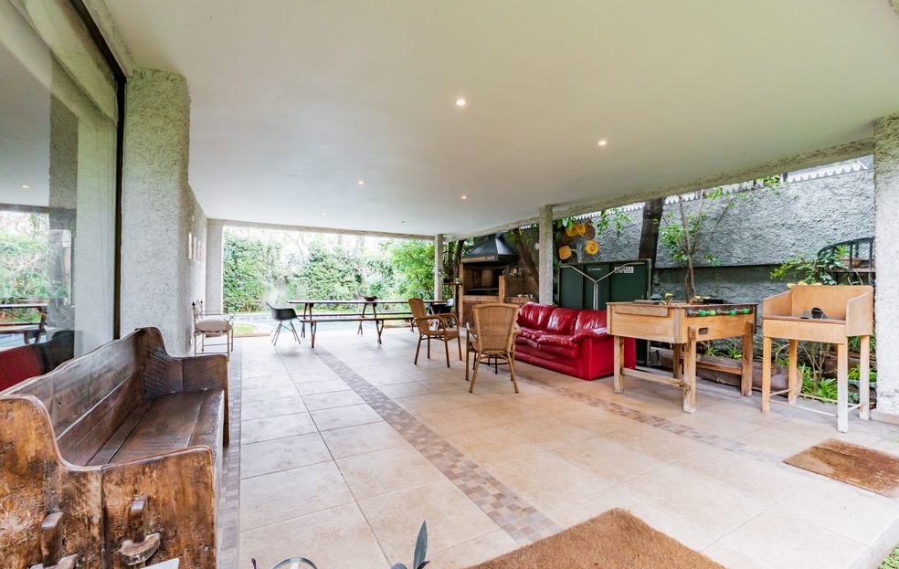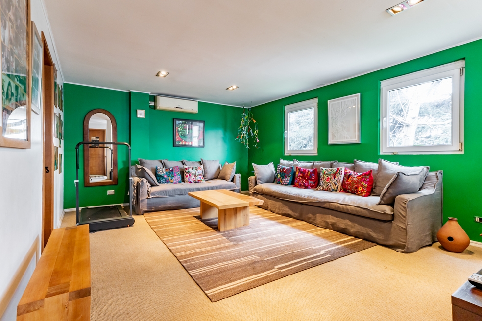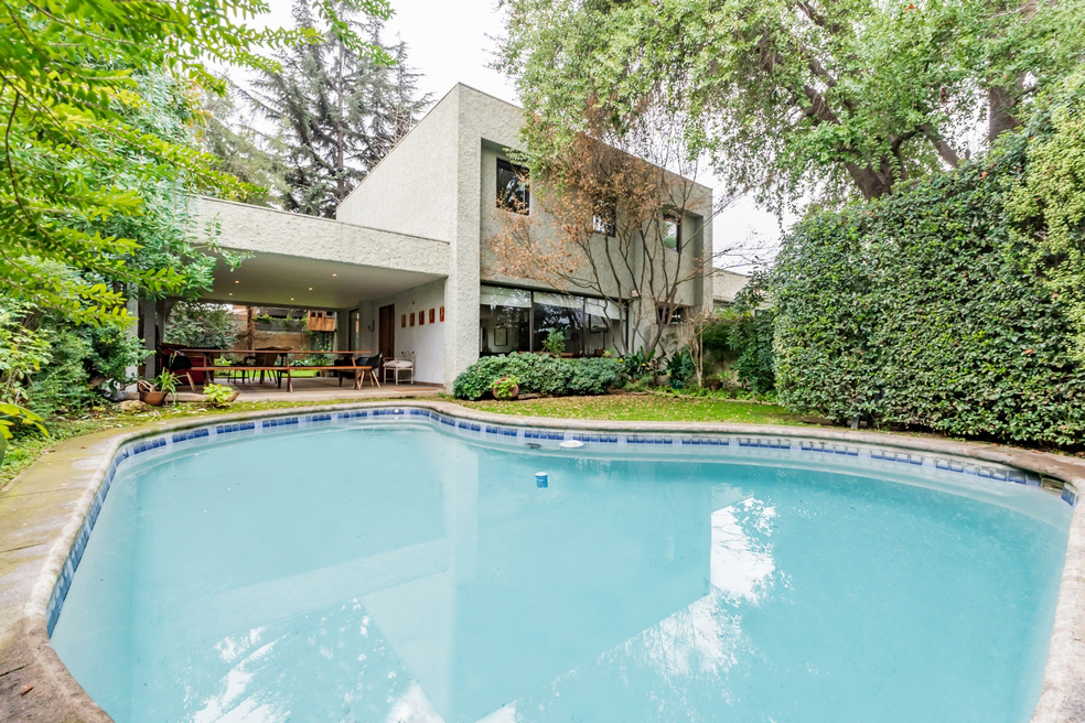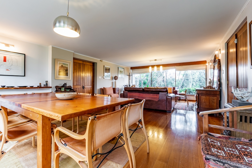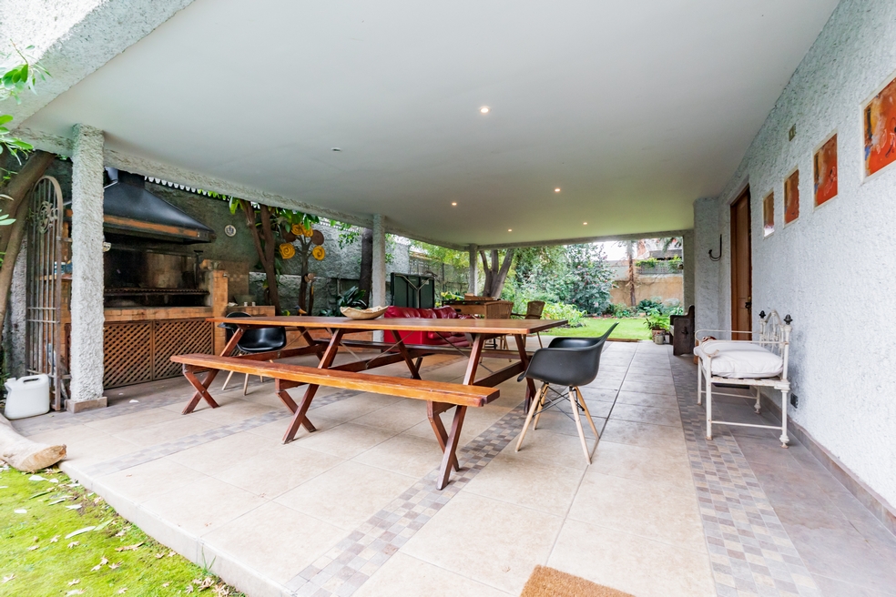 Desde living hay conexión directa a una gran terraza techada que mira a un costado al jardín posterior y por su frente, a una espléndida piscina.
