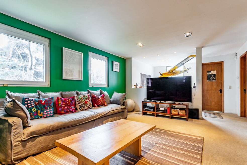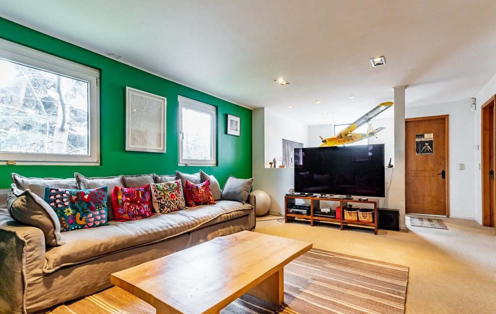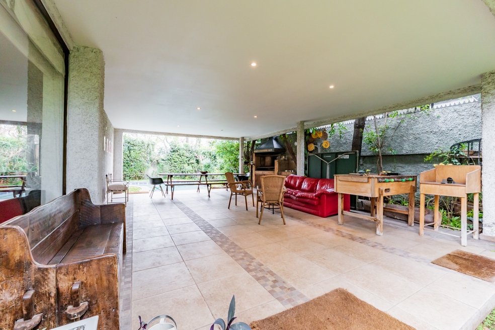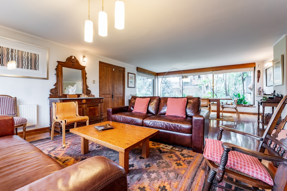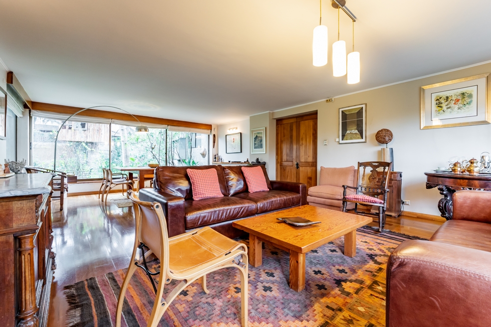 Desde living hay conexión directa a una gran terraza techada que mira a un costado al jardín posterior y por su frente, a una espléndida piscina.