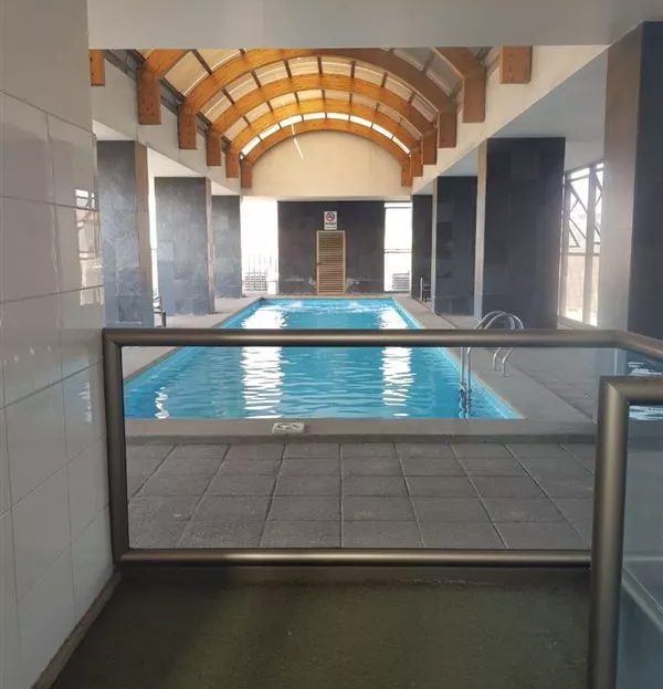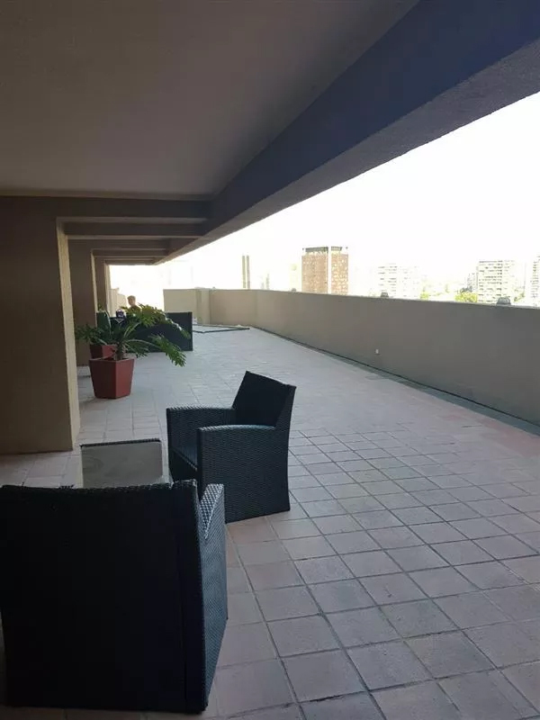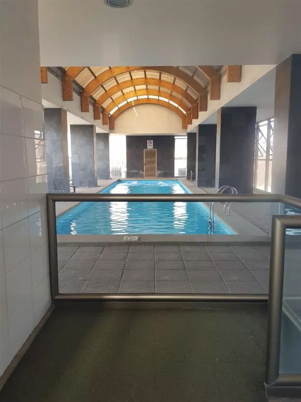 Está emplazado en un edificio del año 2006, que cuenta con un inmejorable equipamiento: piscina, áreas verdes, salón de eventos, gimnasio y una terraza con impactante vista de Santiago.